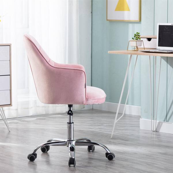 Pink Velvet Swivel Shell Office Chair with Non-adjustable Arms