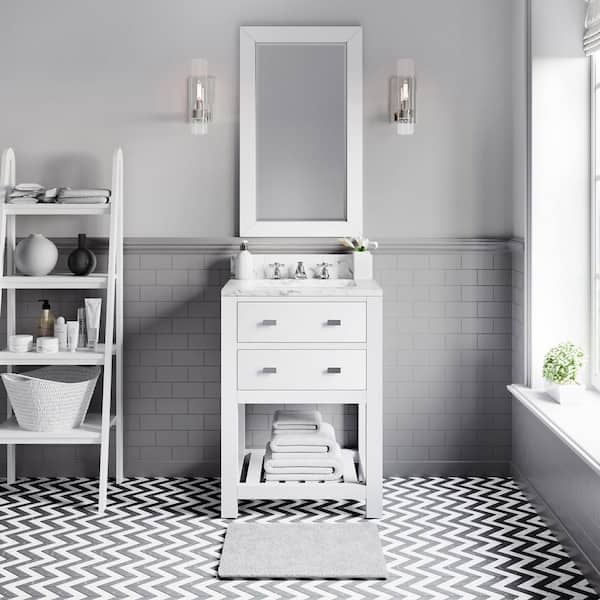 24 in. Vanity in Carrara White with Marble Vanity Top in Carrara White and Mirror