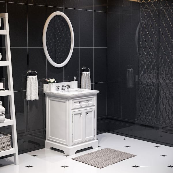 24 in. W x 22 in. D x 34 in. H Bath Vanity in White with Marble Vanity Top in Carrara White with White Basin
