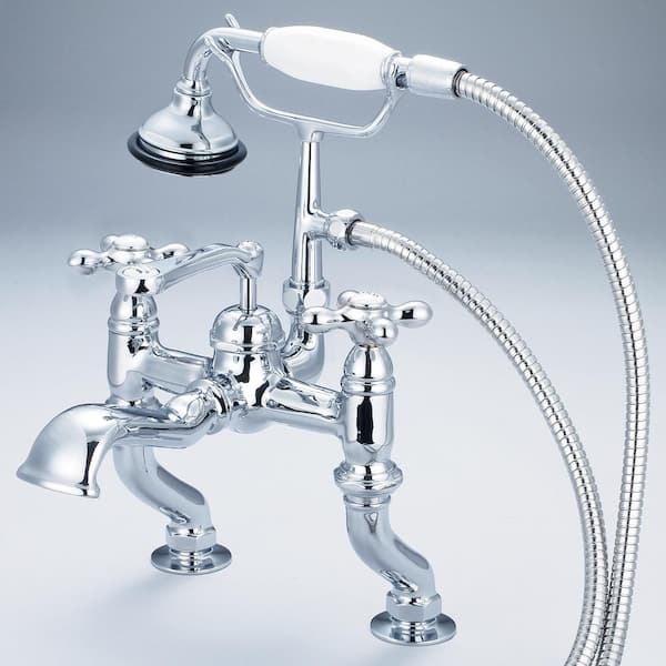 3-Handle Vintage Claw Foot Tub Faucet with Hand Shower and Cross Handles in Triple Plated Chrome