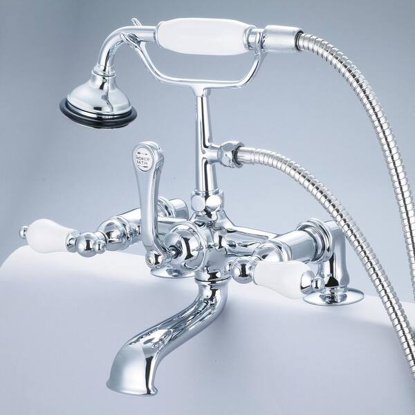 3-Handle Vintage Claw Foot Tub Faucet with Hand Shower and Porcelain Lever Handles in Triple Plated Chrome