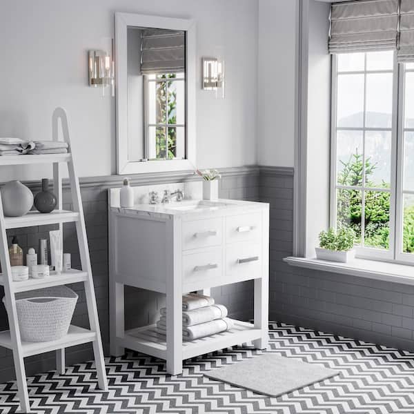 30 in. Vanity in Carrara White with Marble Vanity Top in Carrara White