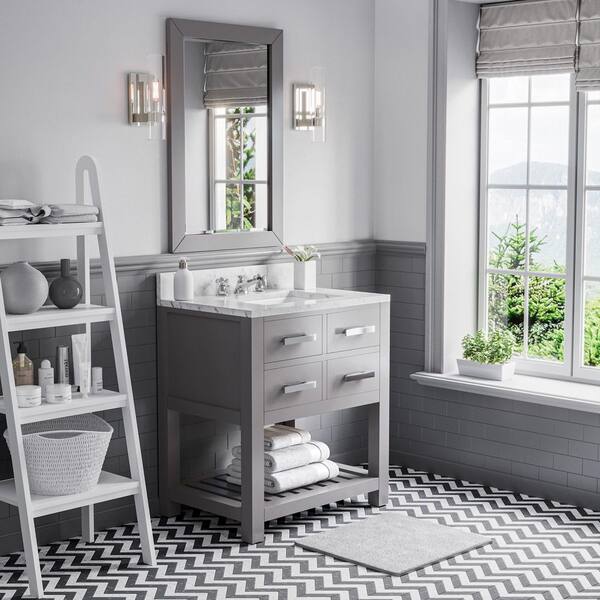 30 in. W x 21.5 in. D Vanity in Cashmere Grey with Marble Vanity Top in Carrara White and Mirror