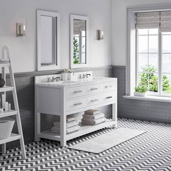 60 in. Vanity in Carrara White with Marble Vanity Top in Carrara White