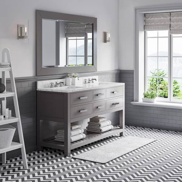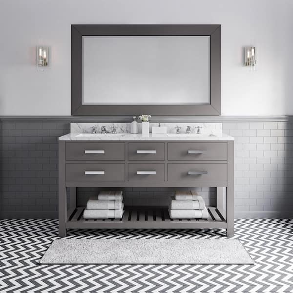 60 in. W x 21.5 in. D Vanity in Cashmere Grey with Marble Vanity Top in Carrara White and Mirror