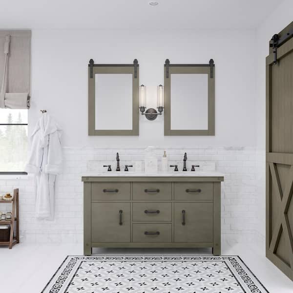Aberdeen 60 in. W x 22 in. D Vanity in Grizzle Gray with Marble Vanity Top in White with White Basin, Faucets and Mirror