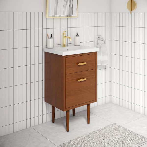 Brandy 20.5 in. W x 15.7 in. D x 34.5 in . H Bath Vanity in Honey Walnut with White Ceramic Top