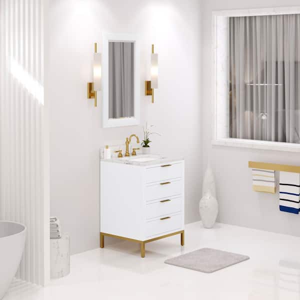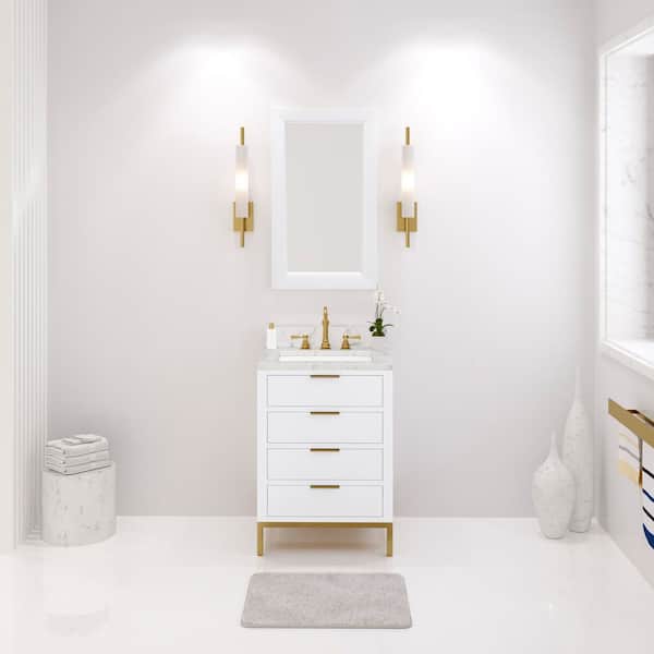 Bristol 24 in. W x 34 in. H x 21.5 in. D Single Sink Bath Vanity in White with Carrara White Marble Top and Hook Faucet