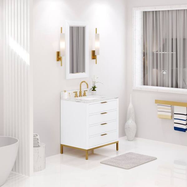 Bristol 30 in. W x 21.5 in. D Vanity in Pure White with Marble Top in White with White Basin and Grooseneck Faucet