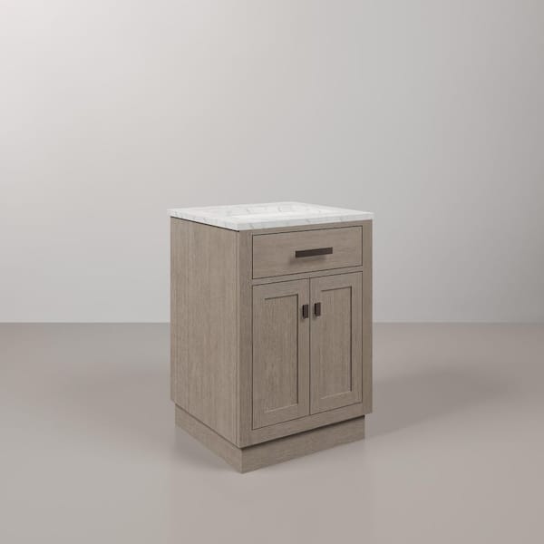 Chestnut 24 in. W x 21.5 in. D x 34.2 in. H Single Sink Bath Vanity in Grey Oak with Carrara White Marble Top