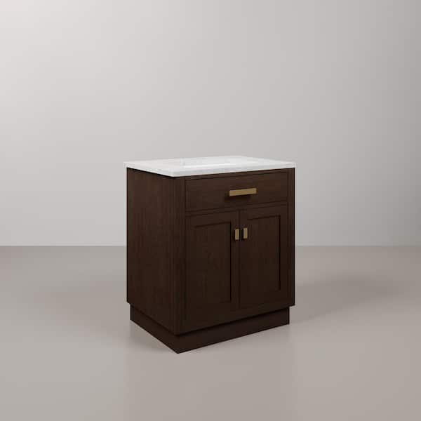 Chestnut 30 in.W x 21.5 in.D x 34.2 in.H Single Sink Bath Vanity in Brown Oak with Carrara White Marble Top and Mirror