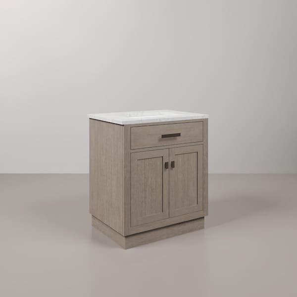 Chestnut 30 in. W x 21.5 in. D x 34.2 in. H Single Sink Bath Vanity in Grey Oak with Carrara White Marble Top