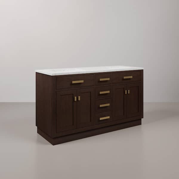 Chestnut 60 in. W x 21.5 in. D x 34.2 in. H Double Sink Bath Vanity in Brown Oak with Carrara White Marble Top
