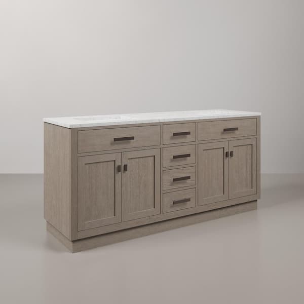 Chestnut 72 in.W x 21.5 in.D x 34.2 in.H Double Sink Bath Vanity in Grey Oak with Carrara White Marble Top and Mirrors