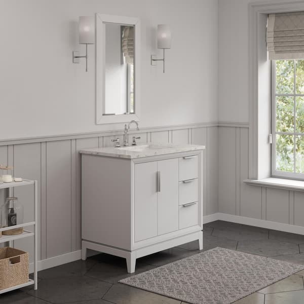 Elizabeth Collection 36 in. Bath Vanity in Pure White With Vanity Top in Carrara White Marble - With Mirror(s)