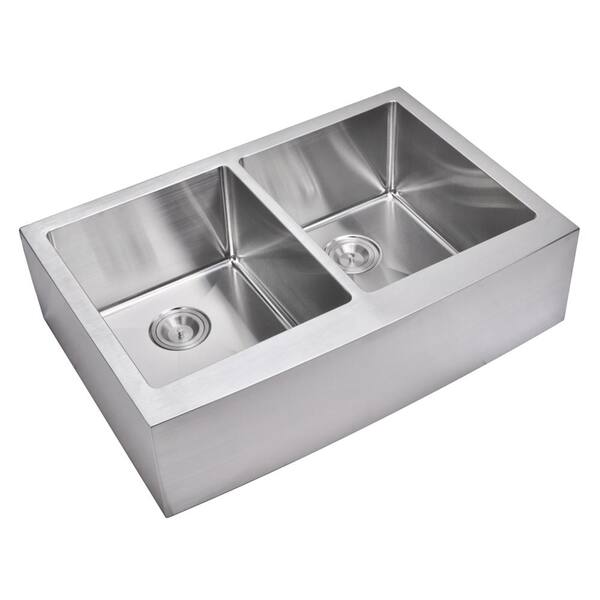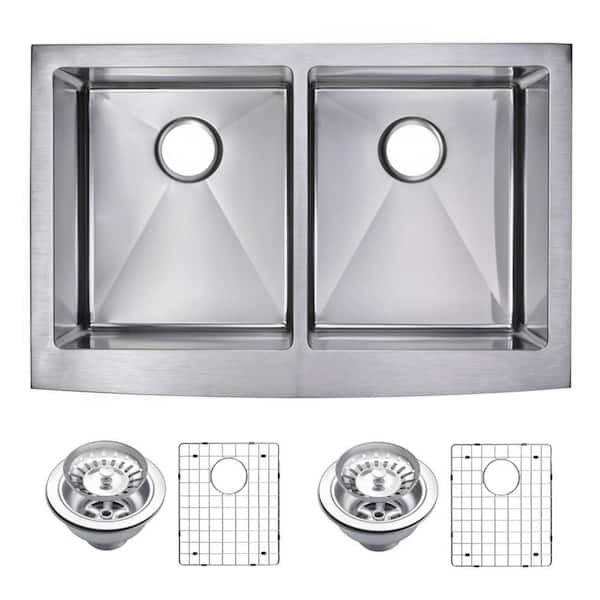 Farmhouse Apron Front Stainless Steel 33 in. Double Bowl Kitchen Sink with Strainer and Grid in Satin