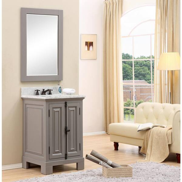 Greenwich 24 in. W x 22 in. D Vanity in Gray with Marble Vanity Top in White with White Basin and Faucet