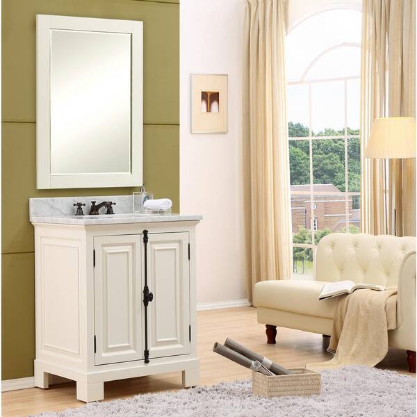 Greenwich 30 in. W x 22 in. D Vanity in Antique White with Marble Vanity Top in White with White Basin and Faucet