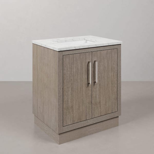 Hugo 30 in. W x 22 in. D Bath Vanity in Grey Oak with Marble Vanity Top in White with White Basin
