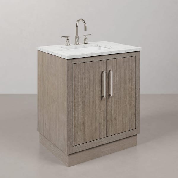 Hugo 30 in. W x 22 in. D Bath Vanity in Grey Oak with Marble Vanity Top in White with White Basin and Gooseneck Faucet