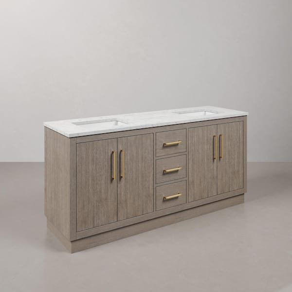 Hugo 72 in. W x 22 in. D Bath Vanity in Grey Oak with Marble Vanity Top in White with White Basin