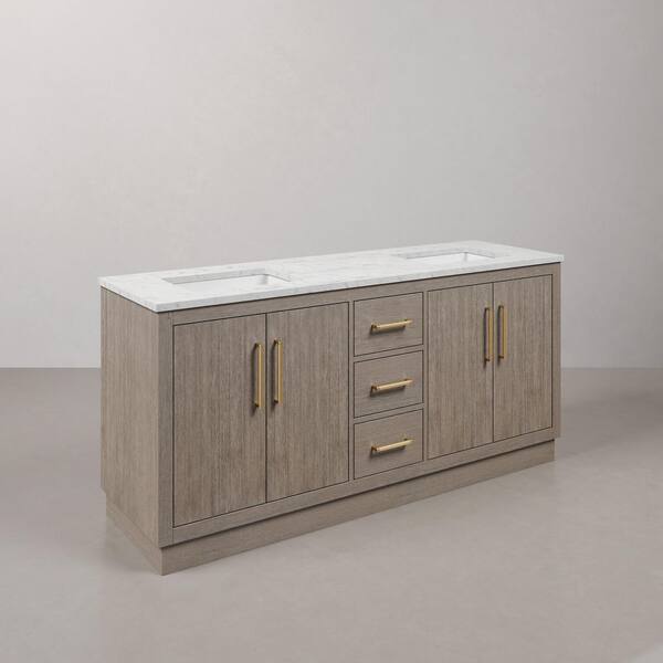 Hugo 72 in. W x 22 in. D Bath Vanity in Grey Oak with Marble Vanity Top in White with White Basin and Mirror