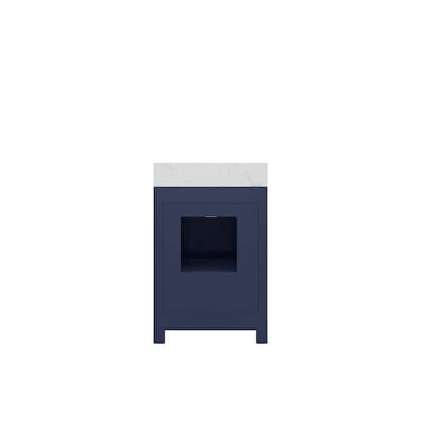 Madison 24 in.W x 21.5 in.D x 34 in.H Single Sink Bath Vanity in Monarch Blue with Carrara White Marble Top and Faucet