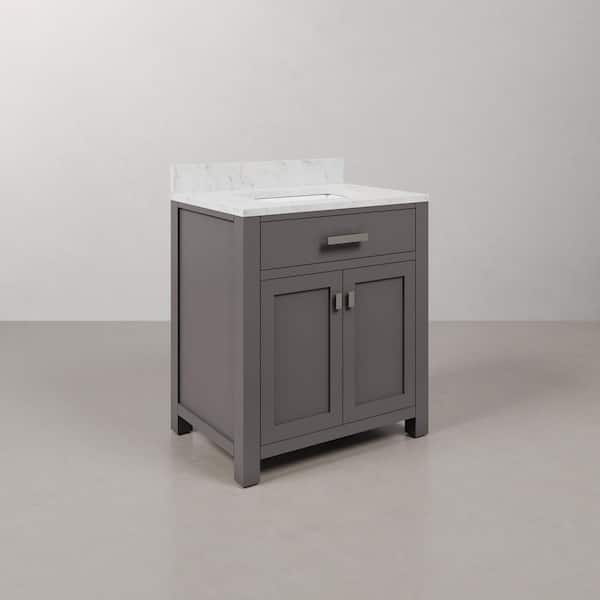 Madison 30 in. W x 21.5 in. D x 34 in. H Single Sink Bath Vanity in Cashmere Grey with Carrara White Marble Top