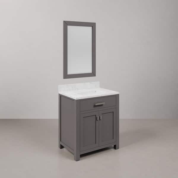 Madison 30 in.W x 21.5 in.D x 34 in.H Single Sink Bath Vanity in Cashmere Grey with Carrara White Marble Top and Mirror