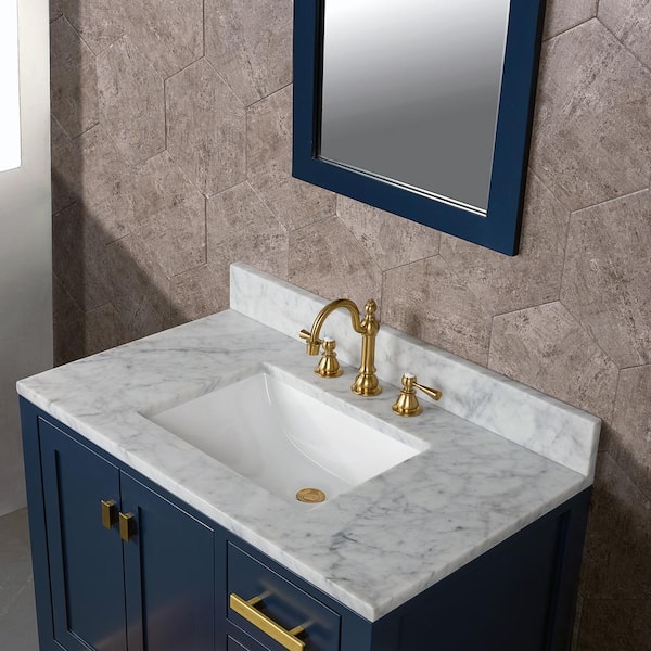 Madison 36 in.W x 21.5 in.D x 34 in.H Single Sink Bath Vanity in Monarch Blue with Carrara White Marble Top and Faucet