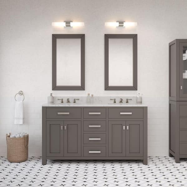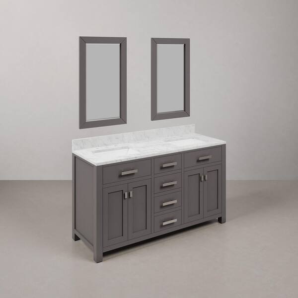 Madison 60 in.W x 21.5 in.D x 34 in.H Double Sink Bath Vanity in Cashmere Grey with Carrara White Marble Top and Mirrors