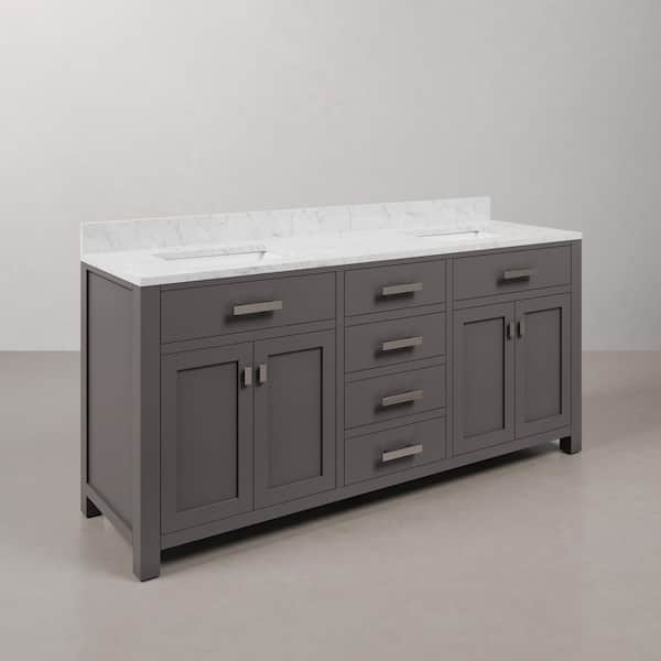 Madison 72 in. W x 21.5 in. D x 34 in. H Double Sink Bath Vanity in Cashmere Grey with Carrara White Marble Top