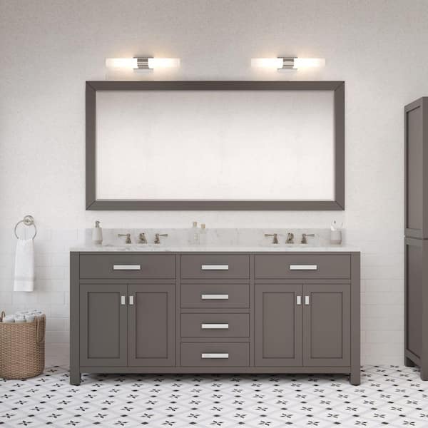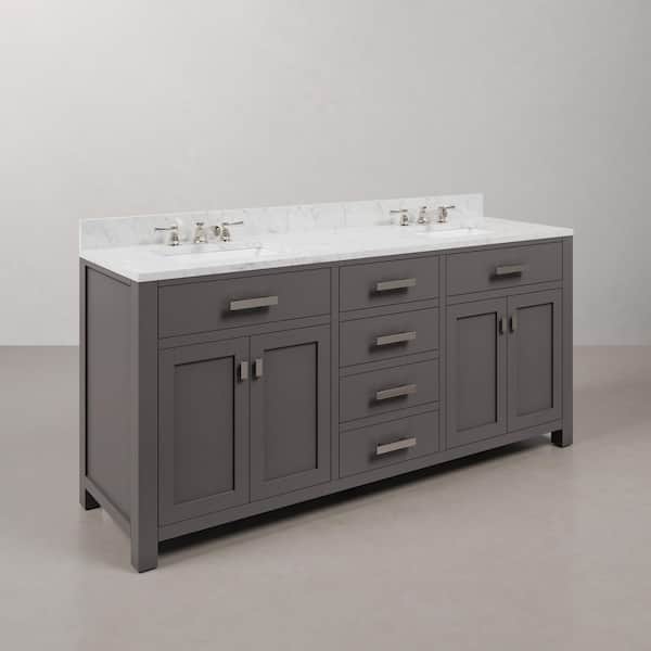 Madison 72 in.W x 21.5 in.D x 34 in.H Double Sink Bath Vanity in Cashmere Grey with Carrara White Marble Top and Faucets