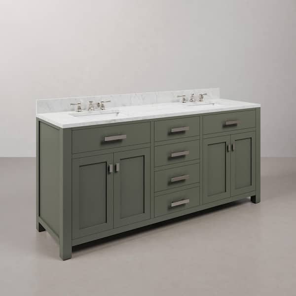Madison 72 in.W x 21.5 in.D x 34 in.H Double Sink Bath Vanity in Glacial Green with Carrara White Marble Top and Faucets