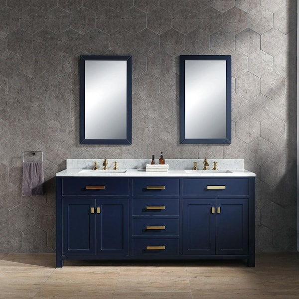 Madison 72 in.W x 21.5 in.D x 34 in.H Double Sink Bath Vanity in Monarch Blue with Carrara White Marble Top and Faucets