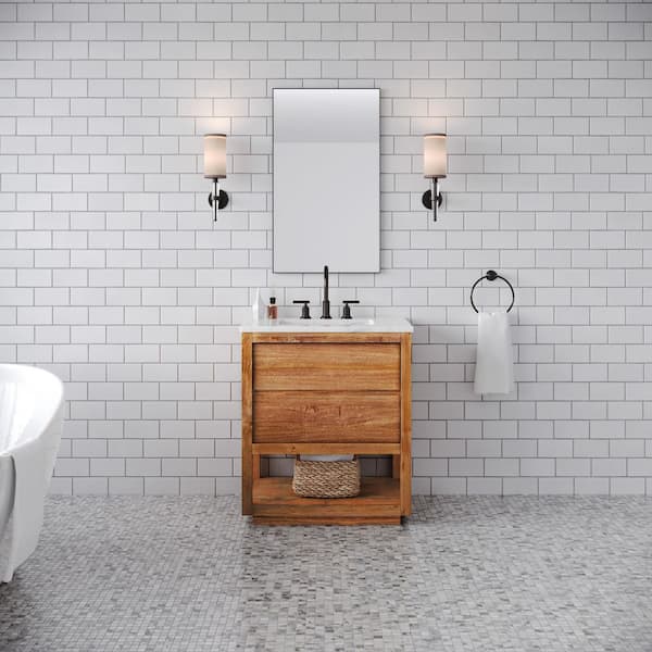Oakman 30 in. W x 22 in. D x 34.7 in. H Single Sink Bath Vanity in Mango Wood with Carrara White Marble Top with Faucet
