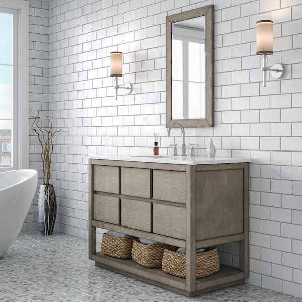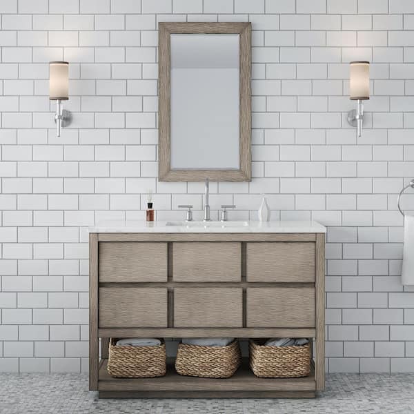 Oakman 48 in. W x 22 in. D x 34.7 in. H Single Sink Bath Vanity in Grey Oak with Carrara White Marble Top with Faucet