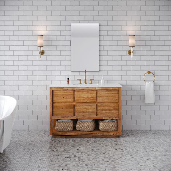 Oakman 48 in. W x 22 in. D x 34.7 in. H Single Sink Bath Vanity in Mango Wood with Carrara White Marble Top with Faucet