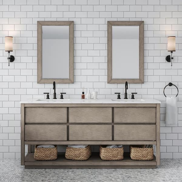 Oakman 72 in. W x 22 in. D x 34.7 in. H Double Sink Bath Vanity in Grey Oak with Carrara White Marble Top with Faucet
