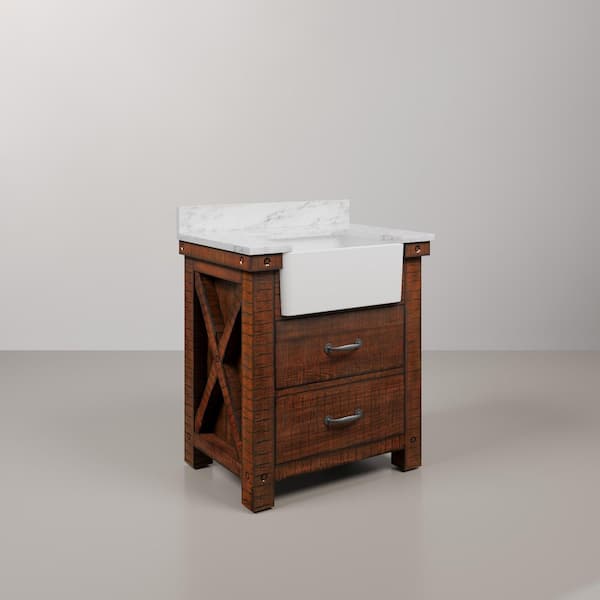 Paisley 31 in. W x 22 in. D Vanity in Rustic Sienna with Marble Vanity Top in White with White Basin and Mirror