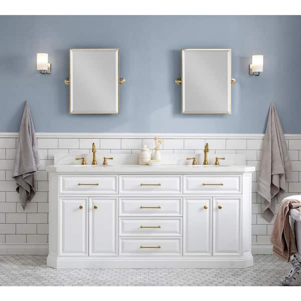 Palace 72 in. W x 22 in. D x 34 in. H Double Sink Bath Vanity in Pure White with Carrara White Quartz Top and Faucets