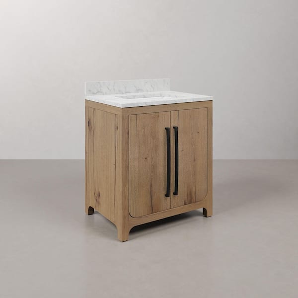 Perris 30 in. Single Sink Bath Vanity in Weathered Oak with Carrara White Engineered Stone Top