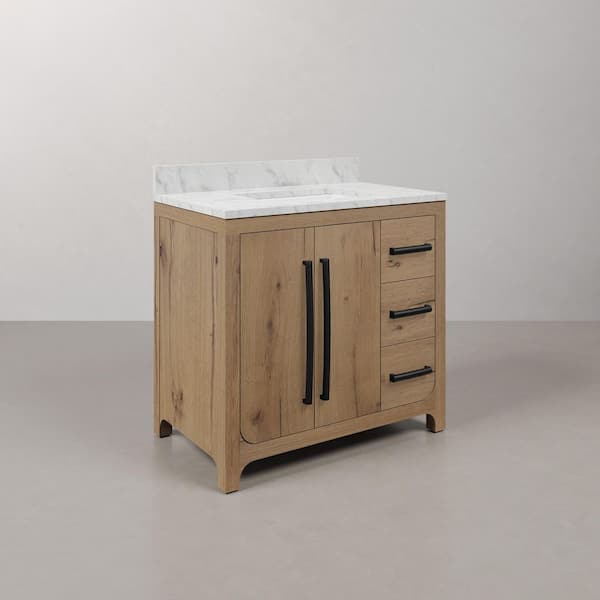 Perris 36 in. Single Sink Bath Vanity in Weathered Oak with Carrara White Engineered Stone Top