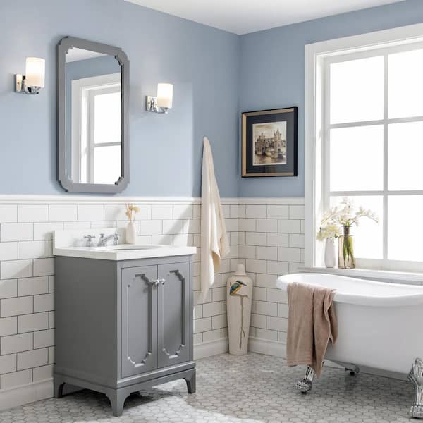 Queen 24 in. Bath Vanity in Cashmere Grey with Quartz Carrara Vanity Top with Ceramics White Basins and Mirror