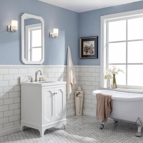 Queen 24 in. Bath Vanity in Pure White with Quartz Carrara Vanity Top with Ceramics White Basins and Faucet