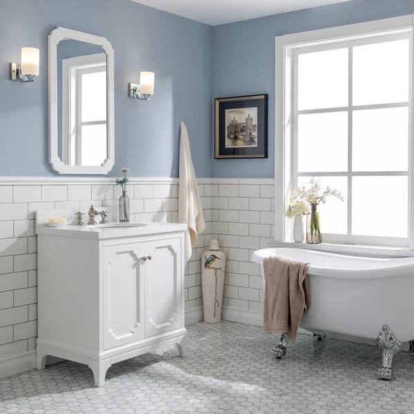 Queen 30 in. Bath Vanity in Pure White with Quartz Carrara Vanity Top with Ceramics White Basins and Faucet