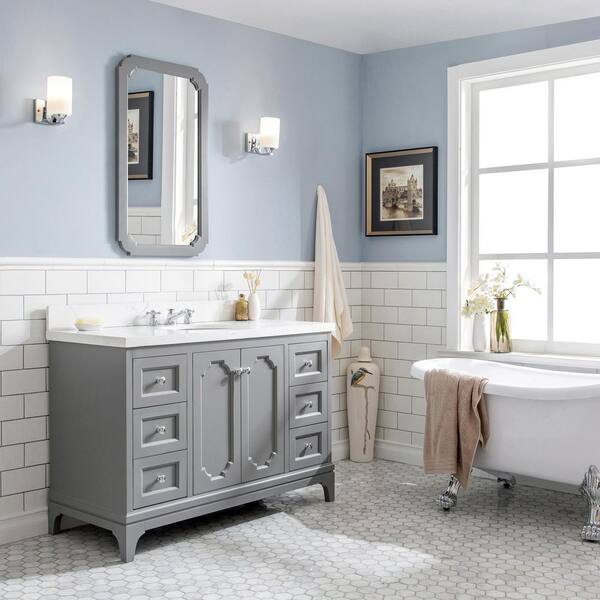 Queen 48 in. Cashmere Grey With Quartz Carrara Vanity Top With Ceramics White Basins