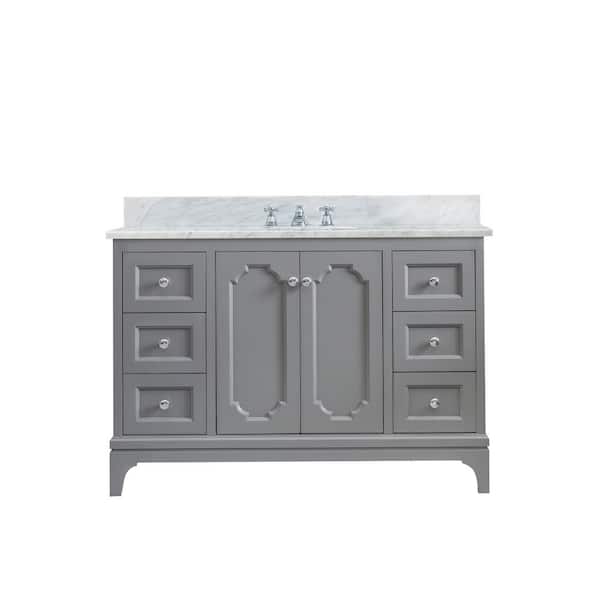 Queen 48 in. W x 22 in. D Bath Vanity in Cashmere Grey with Marble Bath Vanity Top in White with White Basin