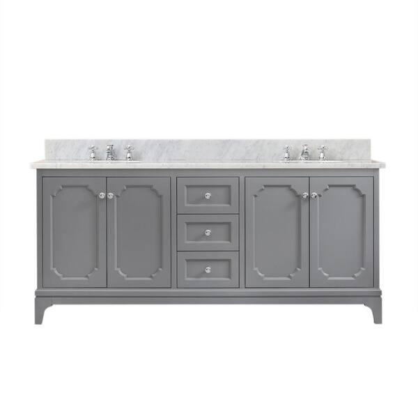 Queen 72 in. W x 22 in. D Bath Vanity in Cashmere Grey with Marble Bath Vanity Top in White with White Basin