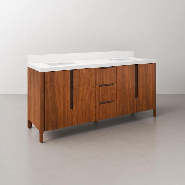 Sequoia 72 In. W x 22 in. D x 34.4 in. H Double Sink Bath Vanity in Noir Juglans with White Quartz Top